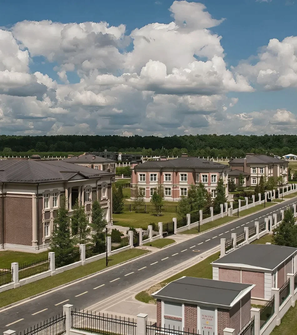 Премиальные коттеджи в классическом стиле с благоустроенным ландшафтом и необходимой инженерной инфраструктурой.